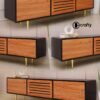 The Mwamu Media Console is a 6ft TV stand that combines modern design with practical storage. Its bold black finish, paired with the natural warmth of a mahogany wood feel, makes it stand out while still blending easily with different interior styles. You can choose between glossy black or matt black, depending on your taste.